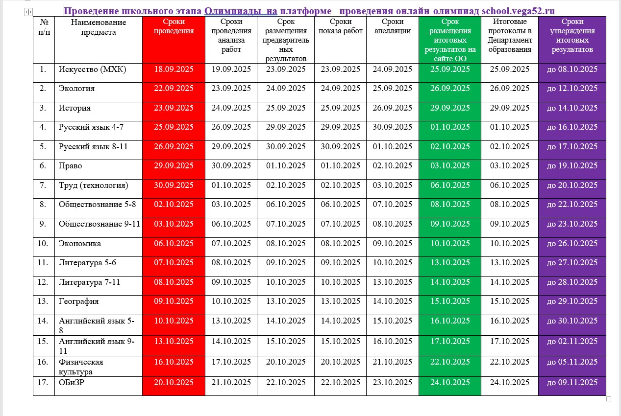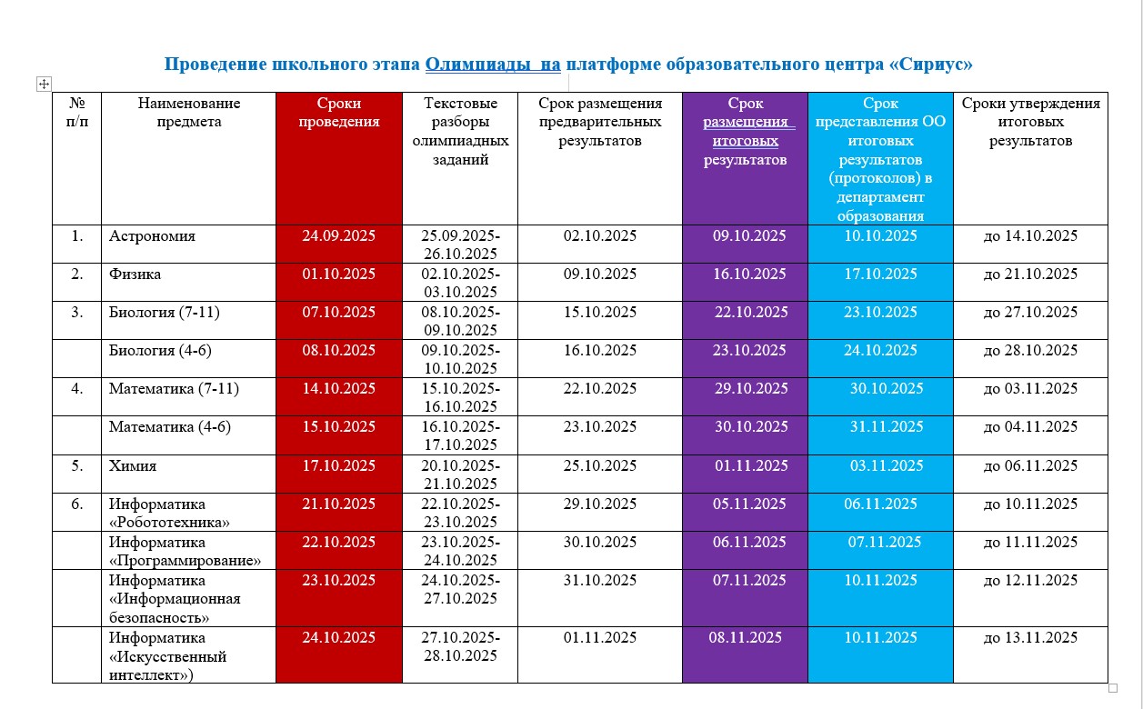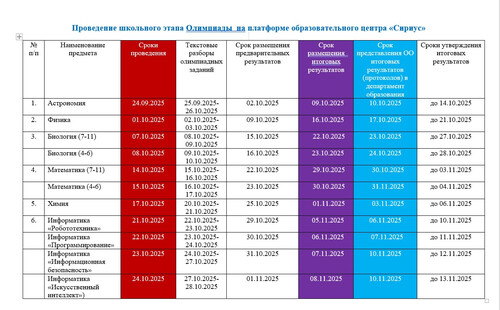 Сроки проведения школьного этапа всероссийской олимпиады школьников в 2025-2026 учебном году